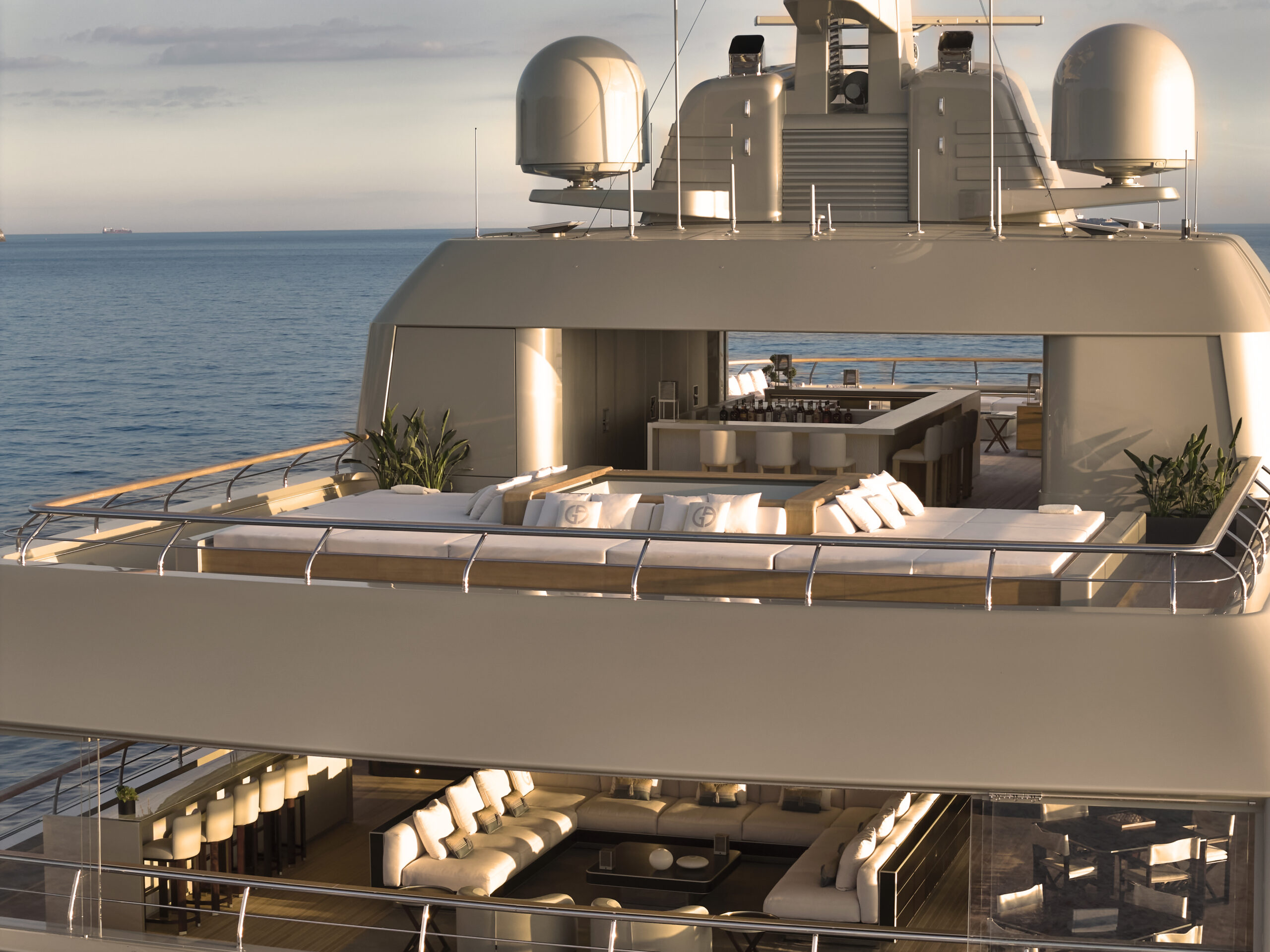 The Admiral GA 72 m is the first motoryacht to be entirely conceived by the legendary designer Giorgio Armani, who personally oversaw every aspect of her exterior and interior design. This unique project marks the fusion of The Italian Sea Group’s nautical excellence and the timeless elegance that is the signature of Armani’s unmistakable style.